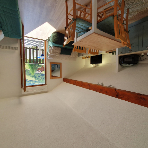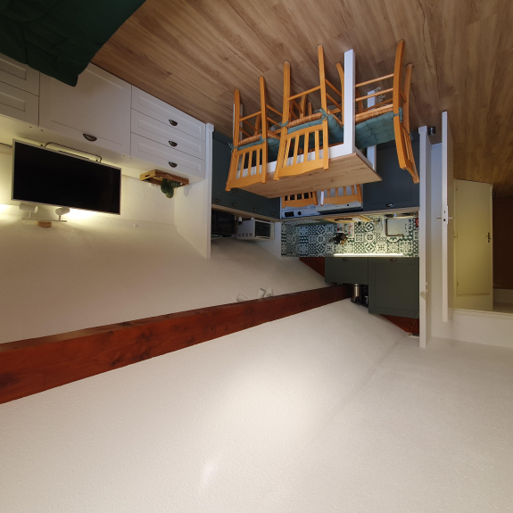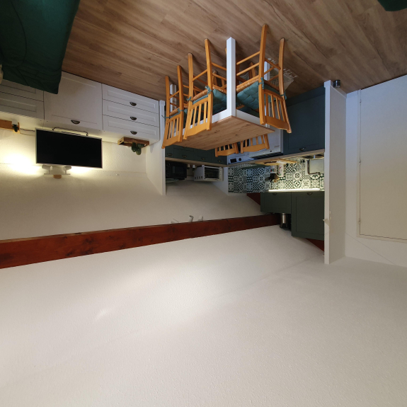 salon-woonkamer-keuken super uitgerust met 2 BZ, badkamer, toilet ind, BALCONY