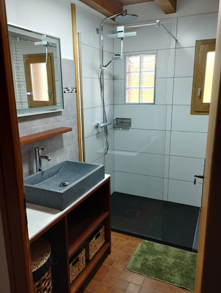 De badkamer is volledig gerenoveerd.