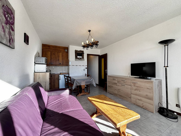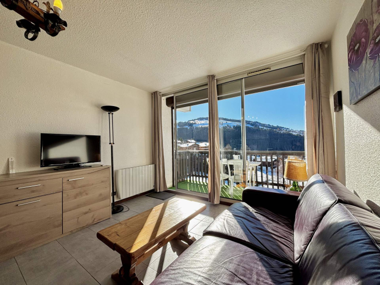 Dit studio-appartement van 25,04 m², gelegen op de 6e verdieping, biedt een ononderbroken uitzicht op het dorp, het zwembad en de Mont Charvin. Dankzij het balkon op het zuiden kun je de hele dag van de zon genieten. Het is ontworpen voor maximaal vier personen en biedt een comfortabele en aangename accommodatie.