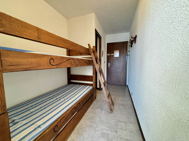 Een entree met een berghoek met een stapelbed van 2*90 cm (lengte bedden 180cm)