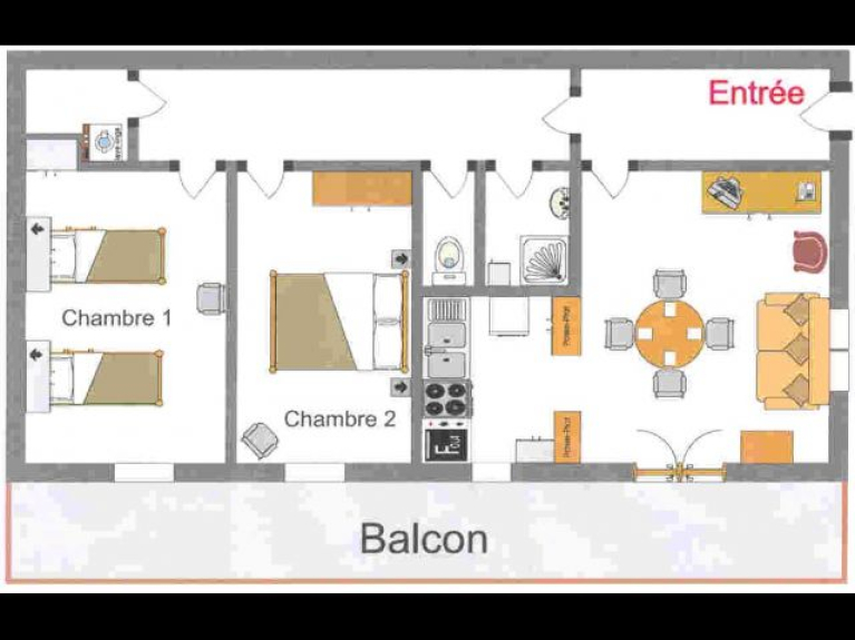 De gite heeft een woonkamer met flatscreen TV TNT en DVD, WIFI, keukenhoek voorzien van alle comfort, vaatwasser magnetron elektrische oven, koelkast met vriesvak gasfornuis.