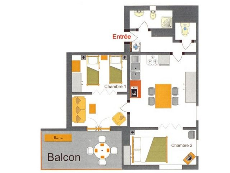 Het appartement heeft een woonkamer, een kitchenette met vaatwasser, magnetron, elektrische oven, koelkast met vriesvak, gasfornuis.