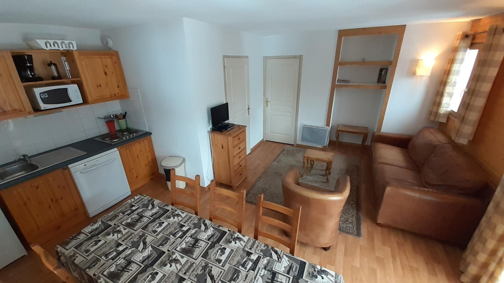 Zeer goed gelegen appartement in een kleine residentie in chaletstijl op 50 m van het centrum, de kabelbaan, winkels en skischolen ESF en ESI.